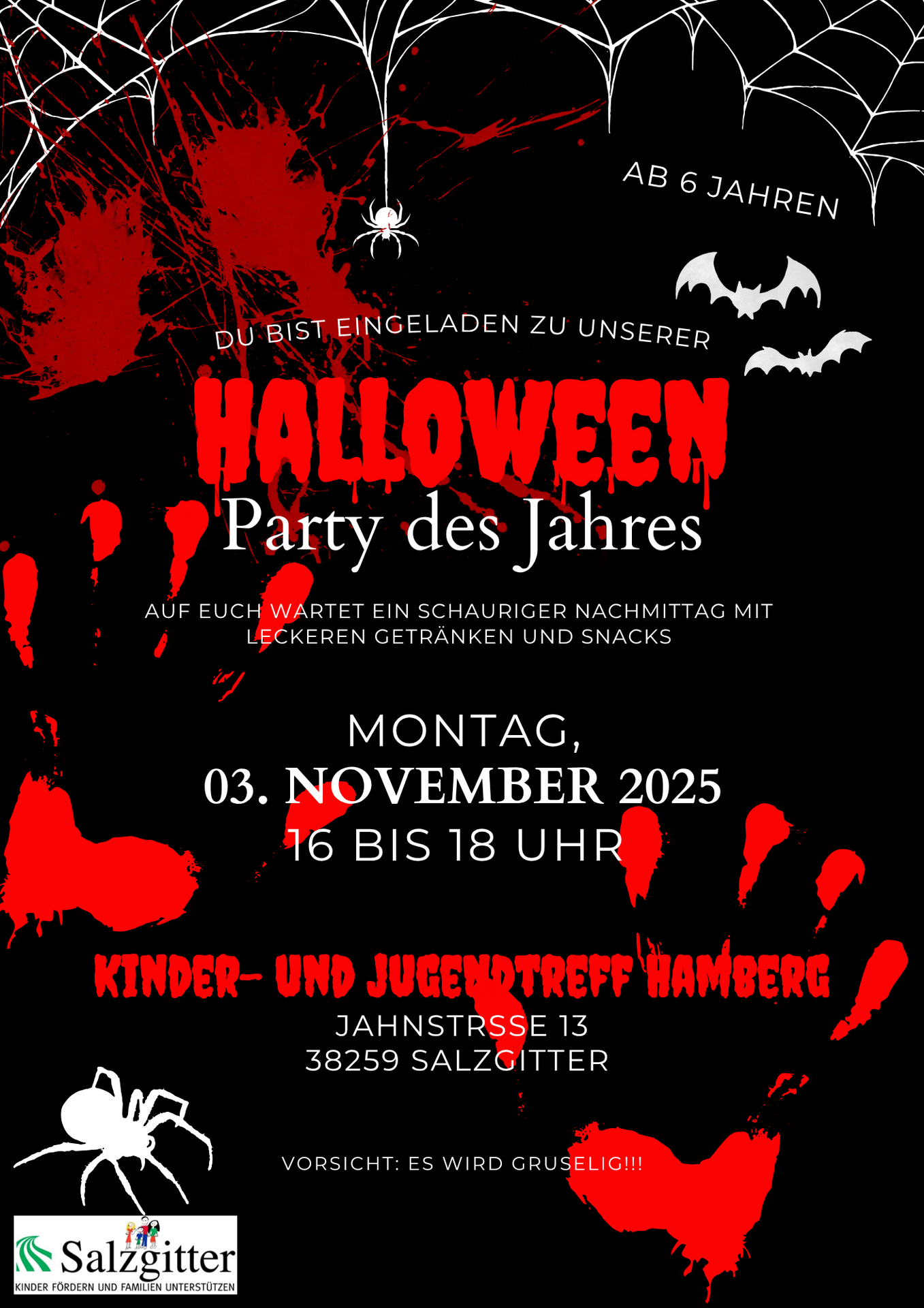 Von 16 bis 18 Uhr wird Halloween gefeiert! Kommt in euren Kostümen und gruselt euch mit uns!