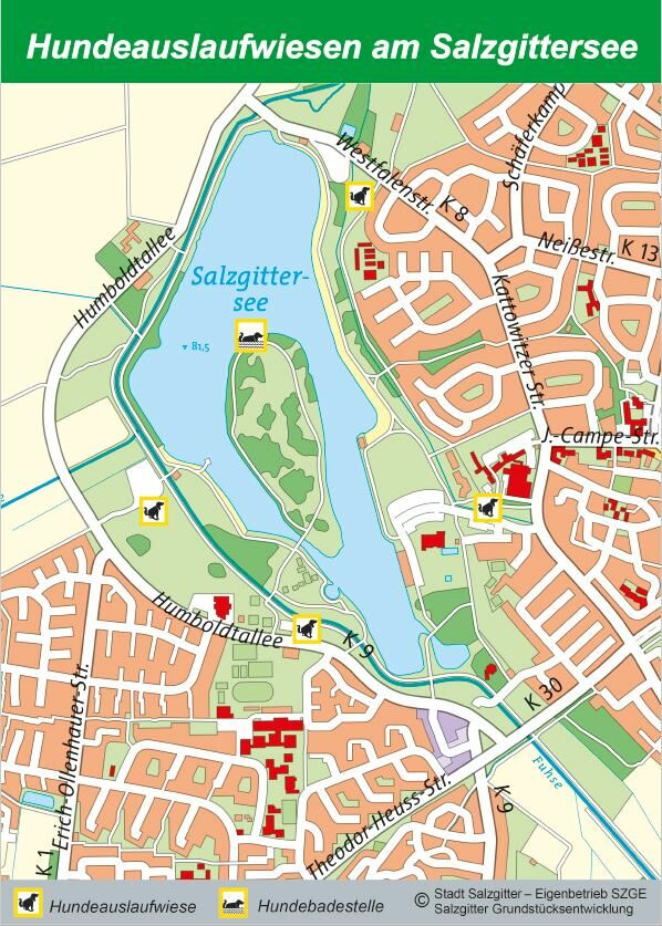 Salzgittersee | Hunde müssen am Salzgittersee mit Ausnahme der vier Hundeauslaufwiesen und des Hundebadestrandes an der Leine geführt werden. ( § 5 Abs. 2 Salzgittersee-VOPDF-Datei132,79 kB) |